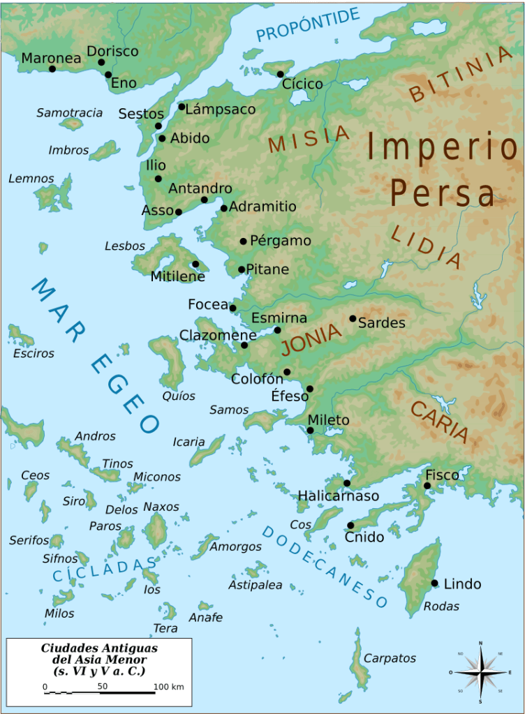 “De los seres, el más antiguo es Dios, por ser ingénito; el más hermoso es el mundo, por ser obra de Dios; el más grande es el espacio porque lo encierra todo; el más veloz es el entendimiento, porque corre por todo; el más fuerte es la necesidad, porque todo lo vence; el más sabio es el tiempo, porque todo lo descubre”.